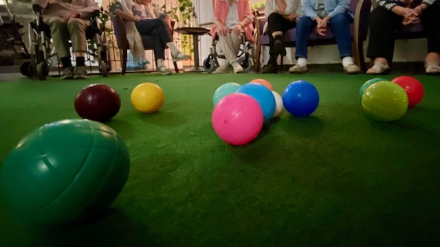 Boccia: Statt im Winter auf den bisherigen Sommersport zu verzichten, pflanzt jetzt allwöchentlich mit Kunstrasen für seine Bewohner/innen eine Indoor-Variante in sein Foyer das Haus am Zernsee.