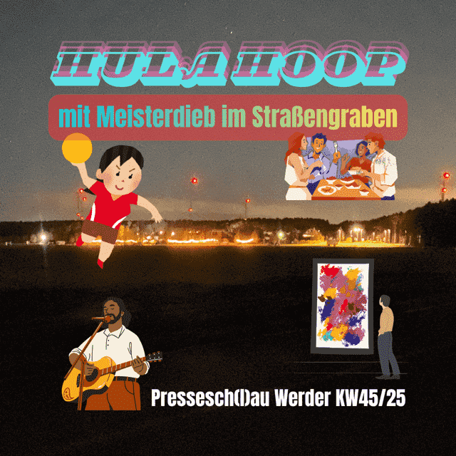 Pressesch(l)au Werder, der donnerstägliche Sammelordner aktueller Netzmeldungen zum Thema Blütenstadt. Ausgabe 147 (KW45/25) unter anderem mit: Silvester, Radverkehr, klingenden Schwestern, einem Erste-Hilfe-Kurs und der Zukunft des Havelthermen-Umfeldes.
